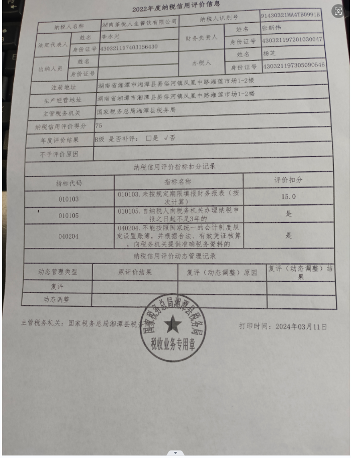企業(yè)納稅信用等級報告: