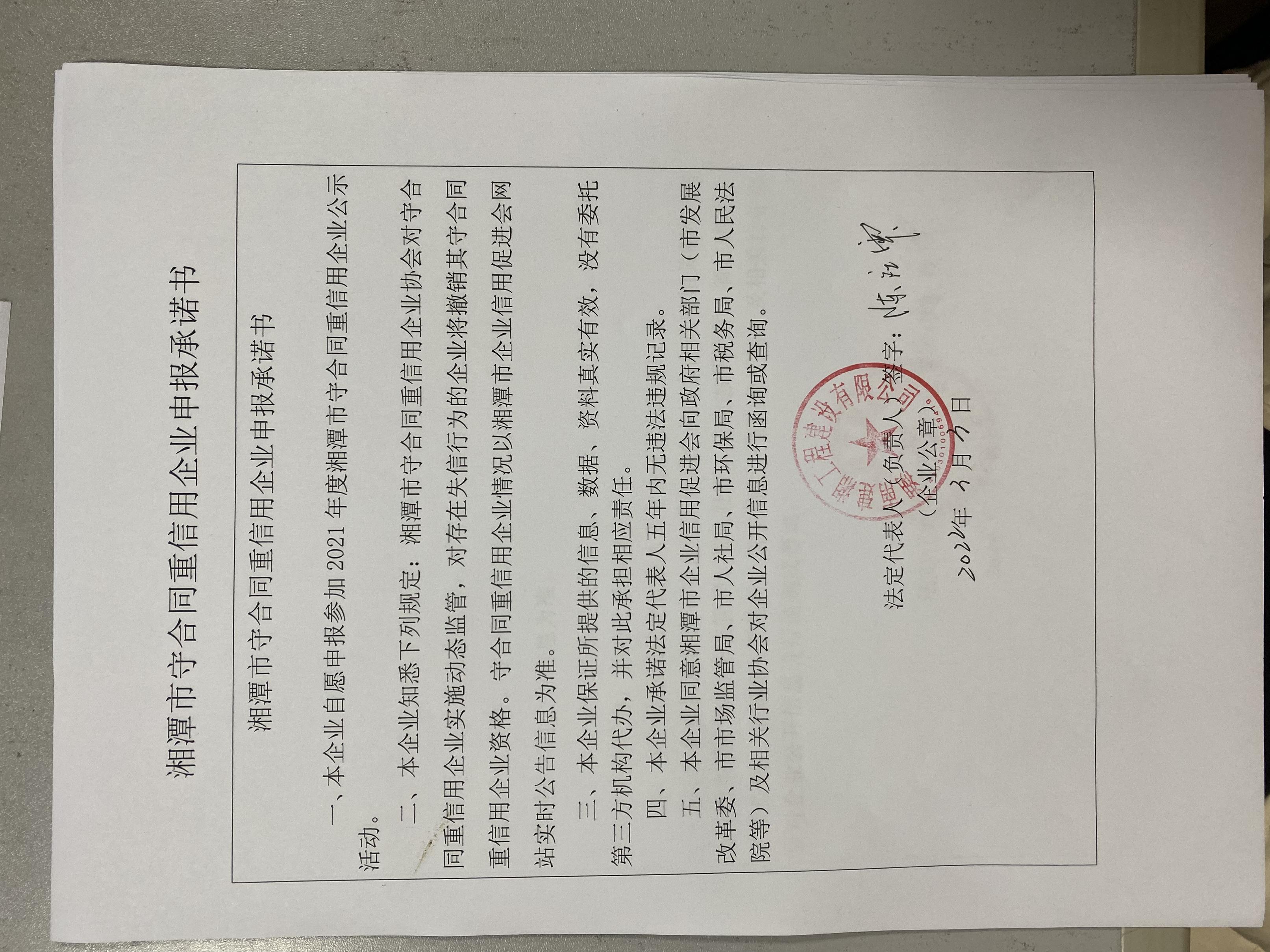 本企業(yè)根據(jù)《湘潭市守合同重信用企業(yè)申報規(guī)定》等編制 2021 年度企業(yè)信用報告書,并保證本報告書內容真實、準確、完整。