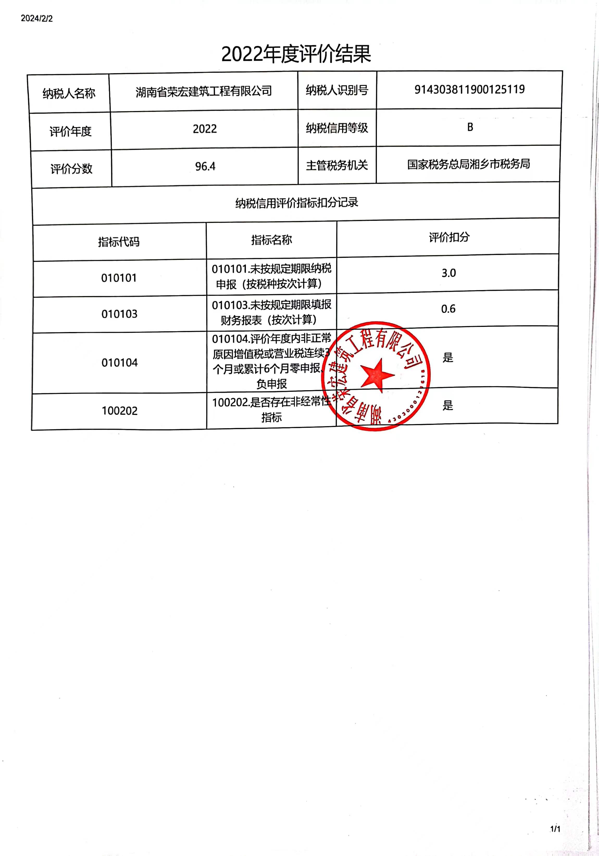 企業(yè)納稅信用等級(jí)報(bào)告: