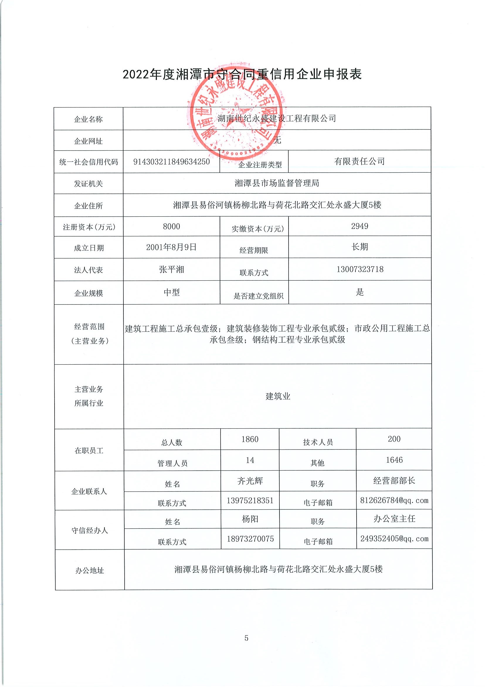 本企業(yè)根據(jù)《湘潭市守合同重信用企業(yè)申報(bào)規(guī)定》等編制 2022 年度企業(yè)信用報(bào)告書,并保證本報(bào)告書內(nèi)容真實(shí)、準(zhǔn)確、完整。