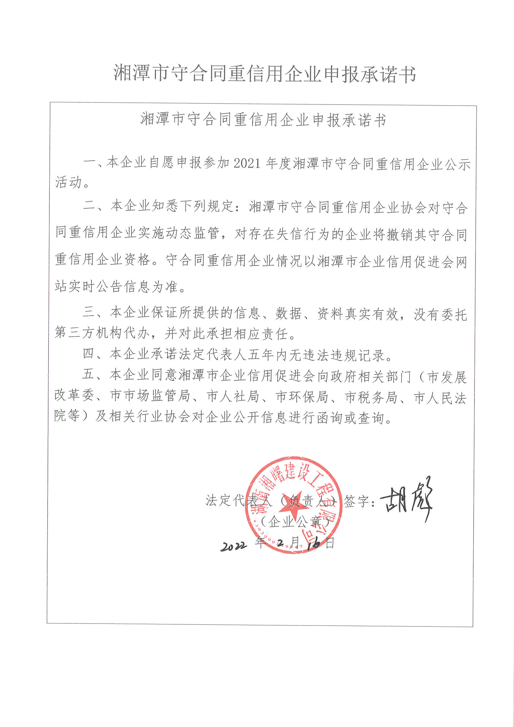 信用申報(bào)承諾書: 湘潭市守合同企業(yè)承諾書.jpg