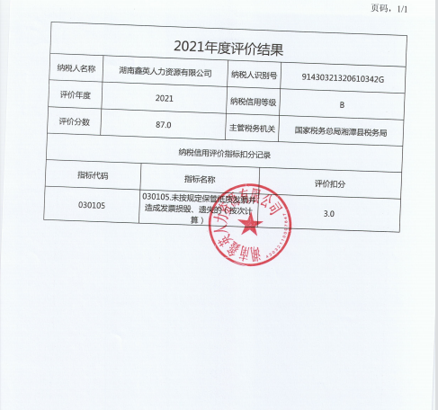 企業(yè)納稅信用等級報告: