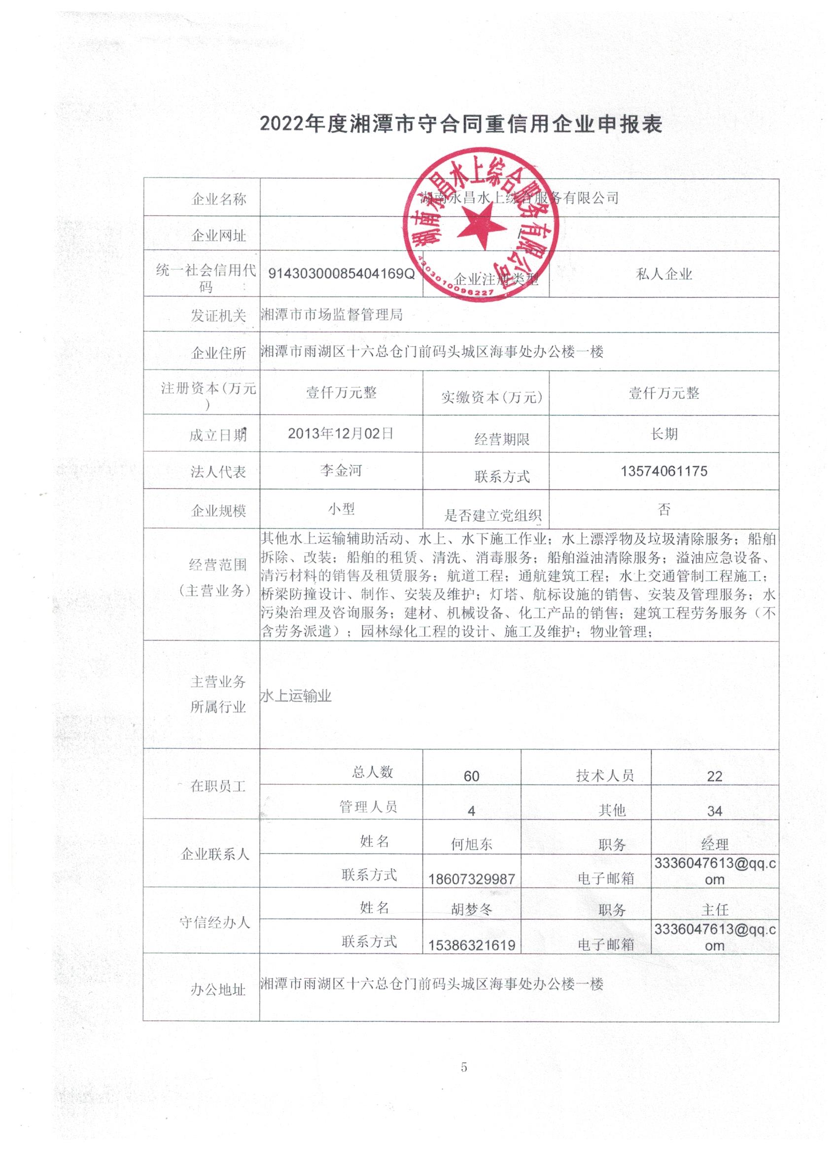 本企業(yè)根據(jù)《湘潭市守合同重信用企業(yè)申報(bào)規(guī)定》等編制 2022 年度企業(yè)信用報(bào)告書,并保證本報(bào)告書內(nèi)容真實(shí)、準(zhǔn)確、完整。