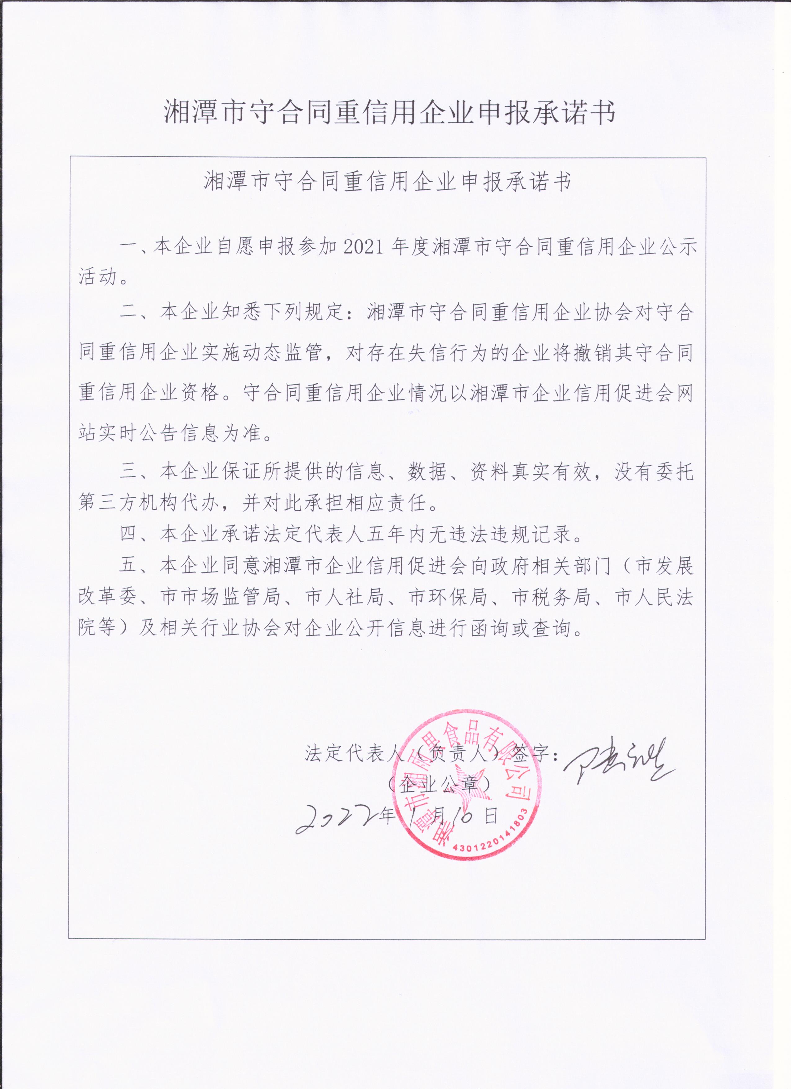 本企業(yè)根據(jù)《湘潭市守合同重信用企業(yè)申報規(guī)定》等編制 2021 年度企業(yè)信用報告書,并保證本報告書內(nèi)容真實、準確、完整。