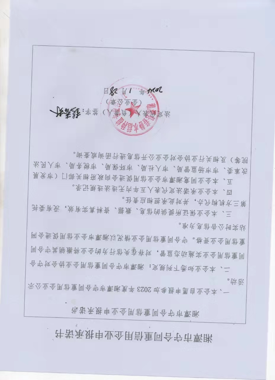 本企業(yè)根據(jù)《湘潭市守合同重信用企業(yè)申報規(guī)定》等編制 2023 年度企業(yè)信用報告書,并保證本報告書內(nèi)容真實、準(zhǔn)確、完整。